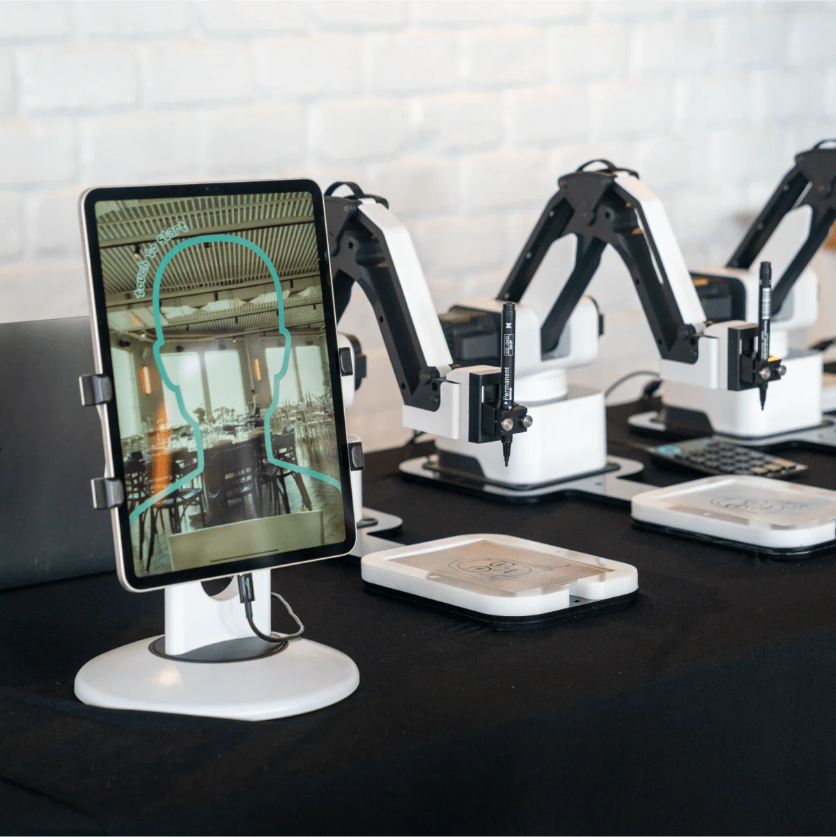Les bras robotisés s’animent et votre photo devient une œuvre d’art sous vos yeux ! Chacun de vos invités repartira avec son portrait, ainsi qu’une version numérique !