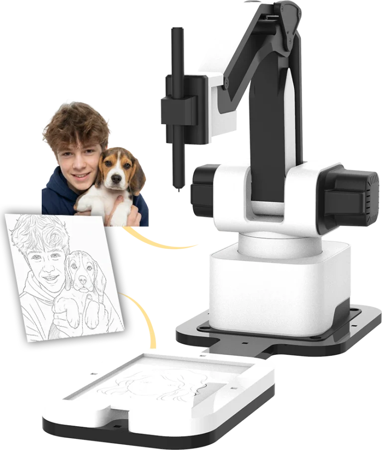 Vous prenez la pause, puis notre robot interprète votre photo pour en faire un dessin.